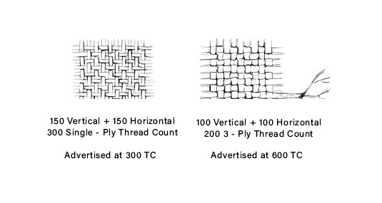 Thread counts advertised in excess of 500 are often misrepresented by manufacturers in order to trick customers. They count not just each thread, but each ply spun together within each thread. As multi-ply construction is often used to strengthen lower-grade cotton, a super high thread count can actually indicate the presence of a lower-quality sheet.